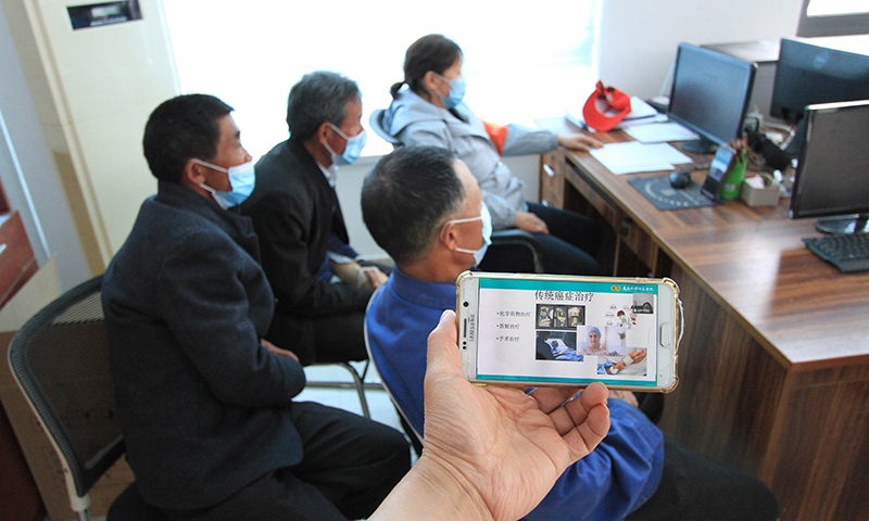 而时值疫情防控期间,“上千亩樱桃有的枯萎,上哪找专家来指导?”面对农村农民的难题,曾庆田指出:“要把老百姓的事当成自己的事,抓紧办、尽快办、办出成效。”大家马不停蹄,几经周折联系到果树学专家刘更森教授,与果农进行视频连线指导。次日,又邀请刘更森来黄泥巷村,深入田间地头,现场指导23户果农剪枝修干,传授祛除虫害、施肥灌溉等技能,得到种植户的认可。