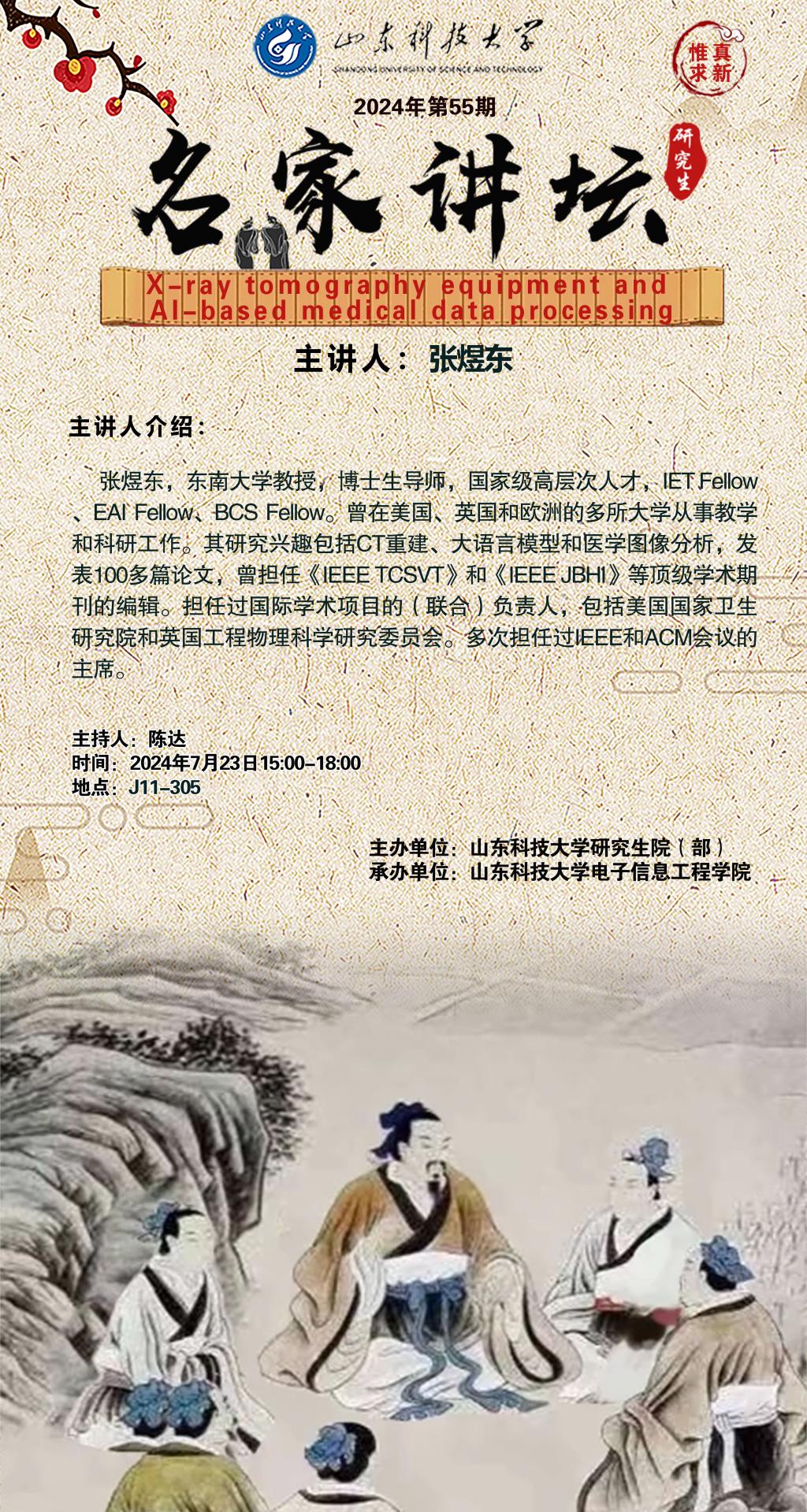 “名家讲坛”2024年第55期:X-ray tomography equipment and AI-based medical data processing(总949期)