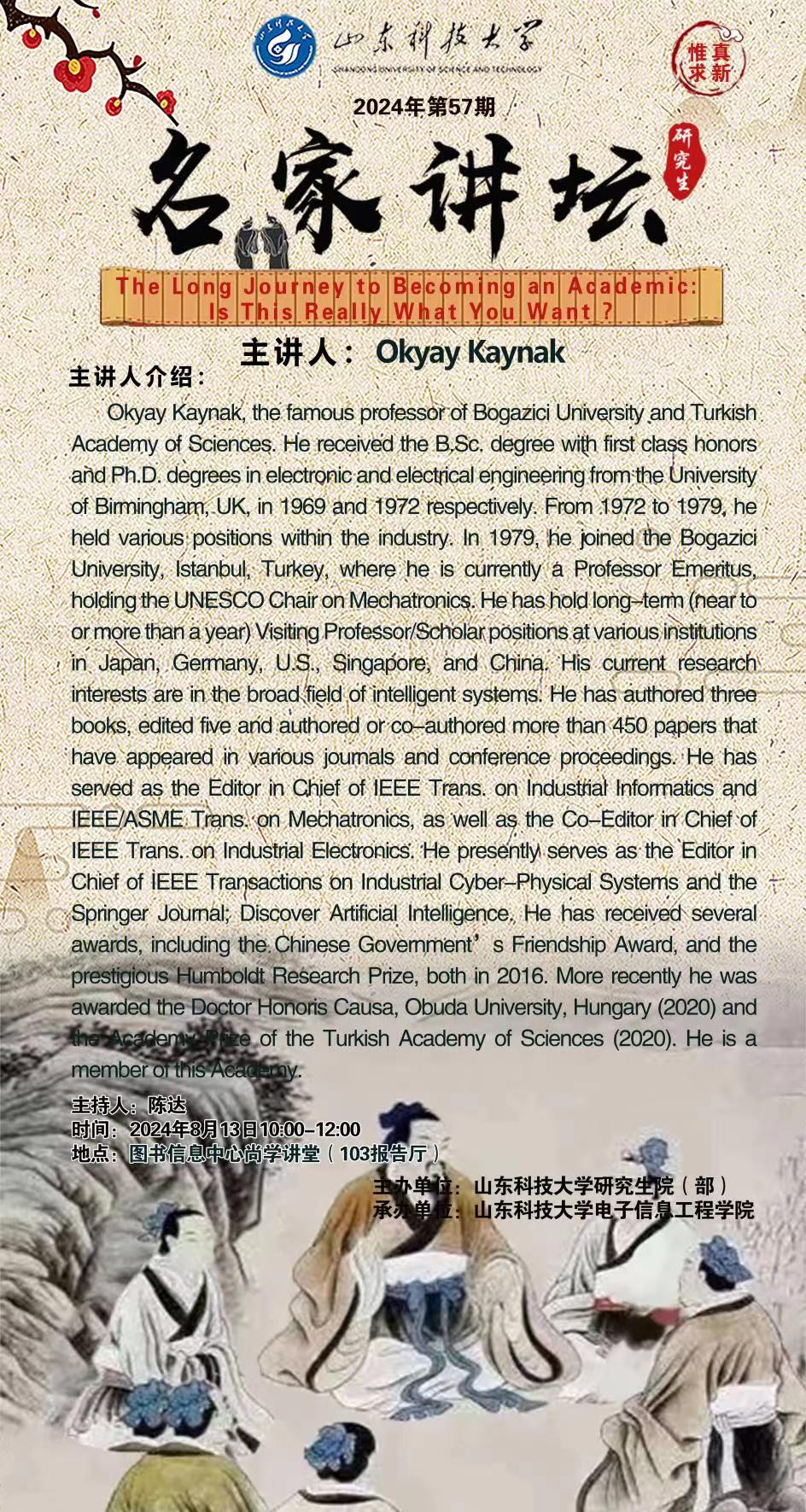 “名家讲坛”2024年第57期:The Long Journey to Becoming an Academic: Is This Really What You Want ?(总951期)