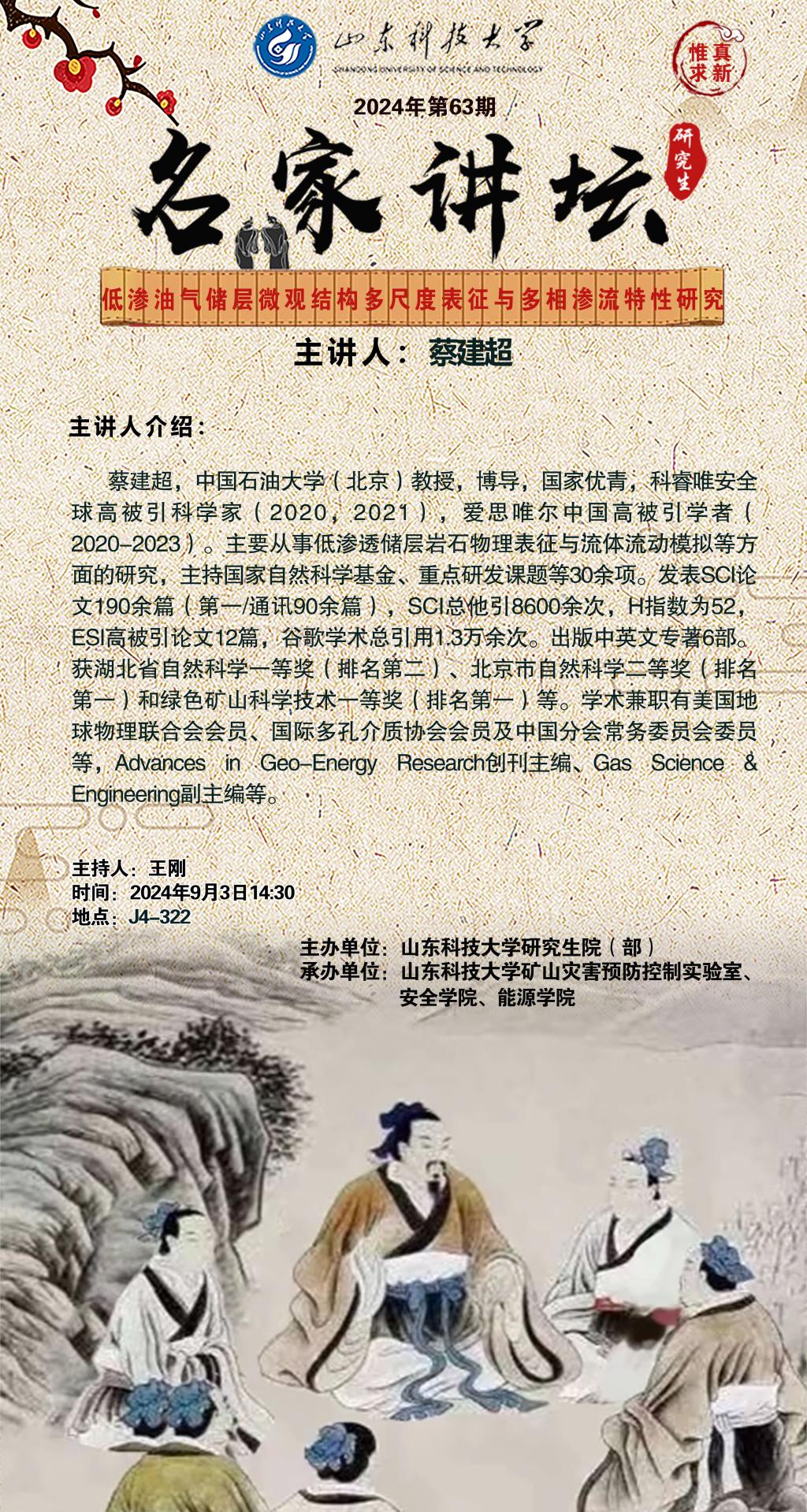 “名家讲坛”2024年第63期:低渗油气储层微观结构多尺度表征与多相渗流特性研究(总957期)