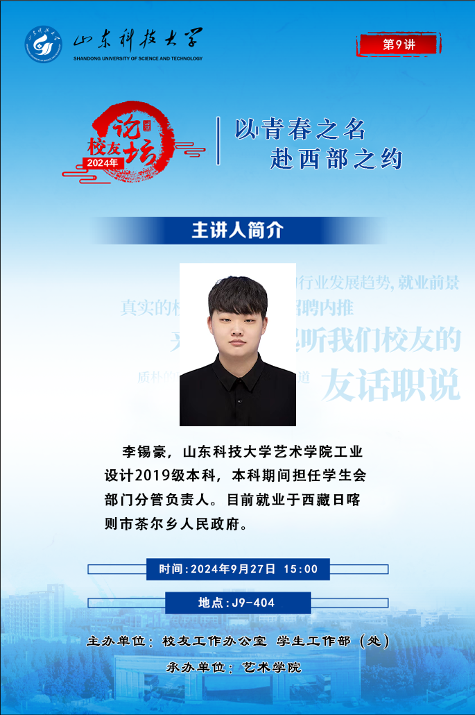 “校友论坛”2024年第9讲:以青春之名 赴西部之约