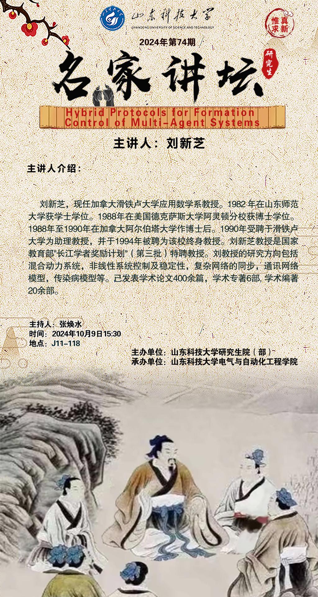 “名家讲坛”2024年第74期:Hybrid Protocols for Formation Control of Multi-Agent Systems(总968期)