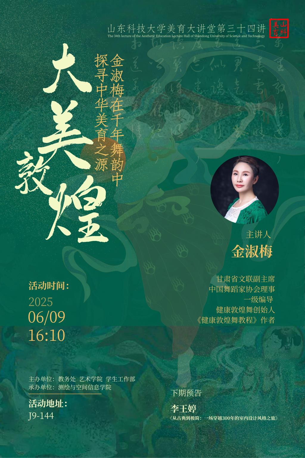 【山科美育】开云手机官方版在线入口美育大讲堂第三十四讲《大美敦煌:金淑梅在千年舞韵中探寻中华美育之源》