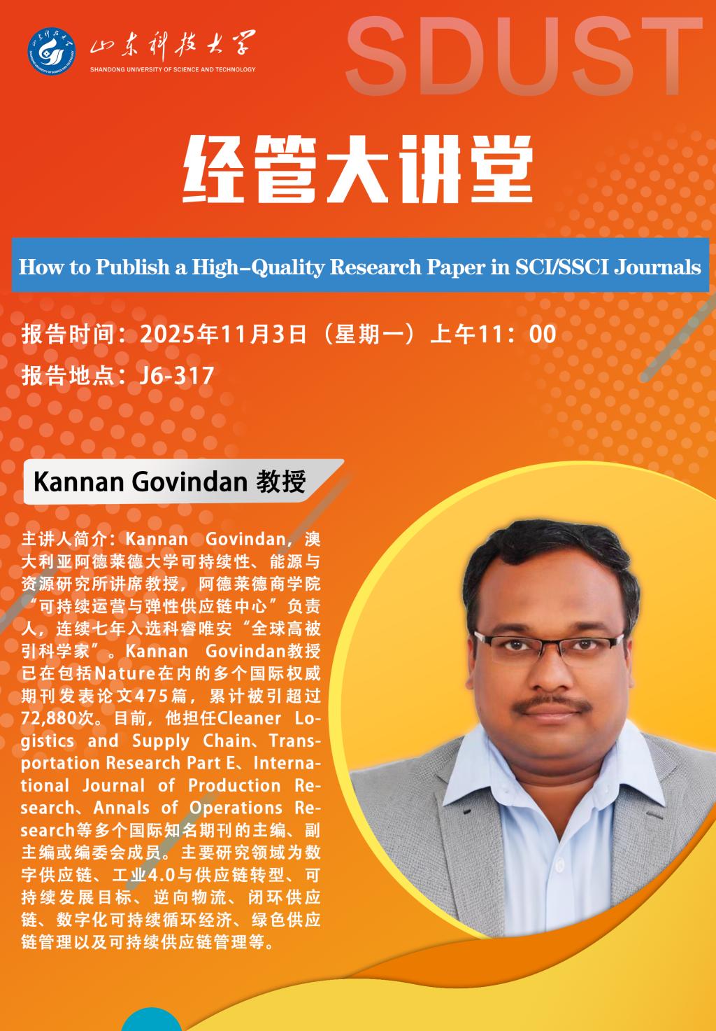 【经管大讲堂】How to Publish a High-Quality Research Paper in SCI/SSCI Journals
