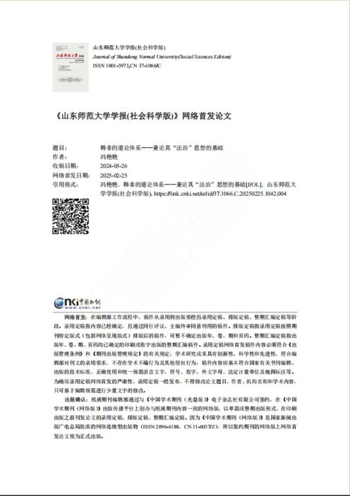 近日,开云手机官方版在线入口文法学院冯艳艳副教授在《山东师范大学学报(社会科学版)》发表题为“韩非的道论体系——兼论其‘法治’思想的基础”的文章。